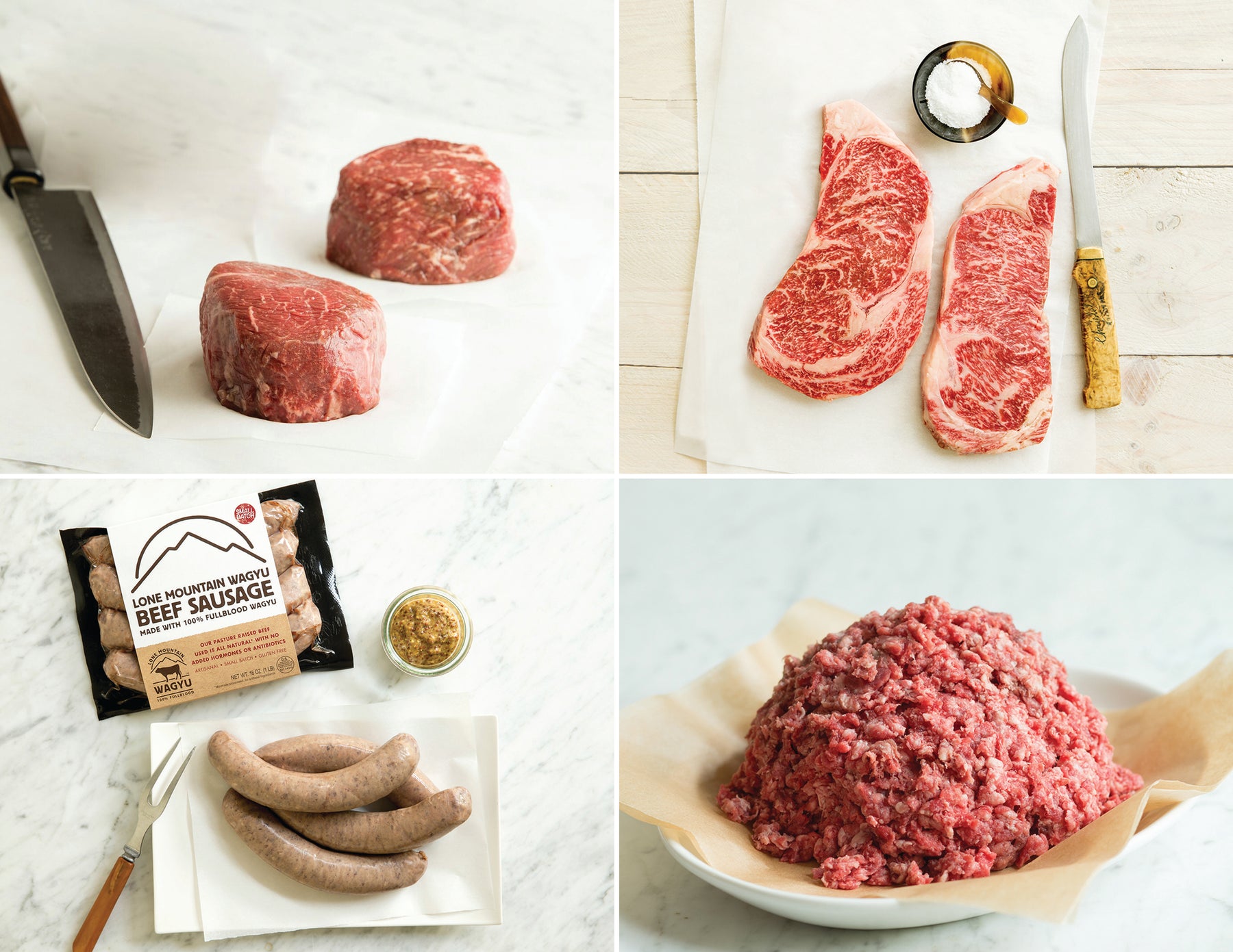 This Wagyu beef sampler pack really has the greatest hits of Lone Mountain. Enjoy the Ribeye. Rich. Reliable. Robust. Really, really, really good. Restaurants know it. Experts know it. You know it. We all know it. The baseball steaks are a great staple and perfect for a weeknight dinner or a dressed up dinner party. Great opportunity to sample our sausages and jerky both of which are top in their respective class. Guaranteed to satisfy. And who doesn't need ground beef in these crazy days—so versatile and delicious! Get this Wagyu beef sampler pack while you can.