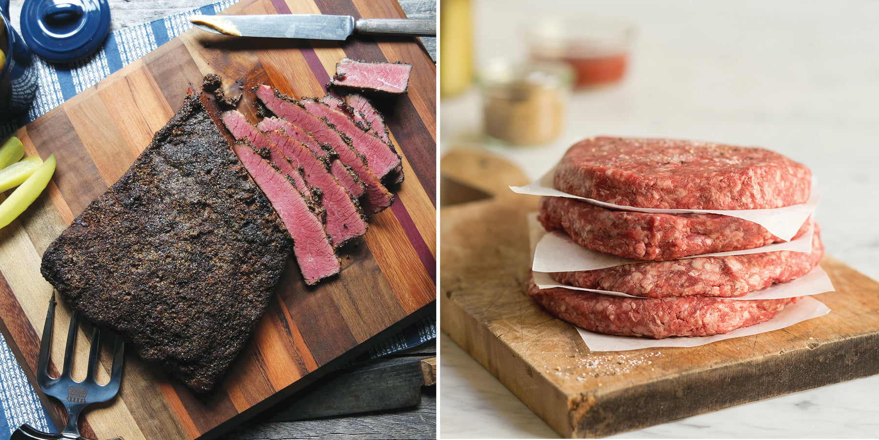 - Set contains 1 Small Packer Brisket and 2 lbs of 8oz Patties (4 patties)